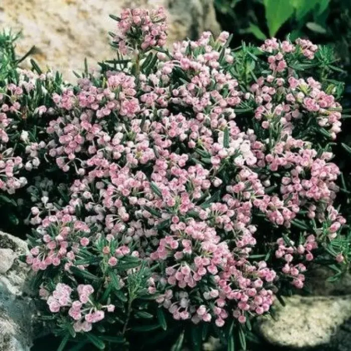 Андромеда / Подбел обыкновенный Blue Lagoon. Листья длиной 2-3 см, ясного голубовато-серого цвета с серебристыми оттенками, похожи на листья розмарина. Куст компактный, высотой 25 см, диаметром 40 см. Цветки розовые колокольчатые, цветёт в мае-июне. Хорошо растёт на болотистых, торфяных кислых почвах, любит солнце, устойчив к болезням. Идеально подходит для альпийских горок и контейнеров, зона 2 (до -40°С).