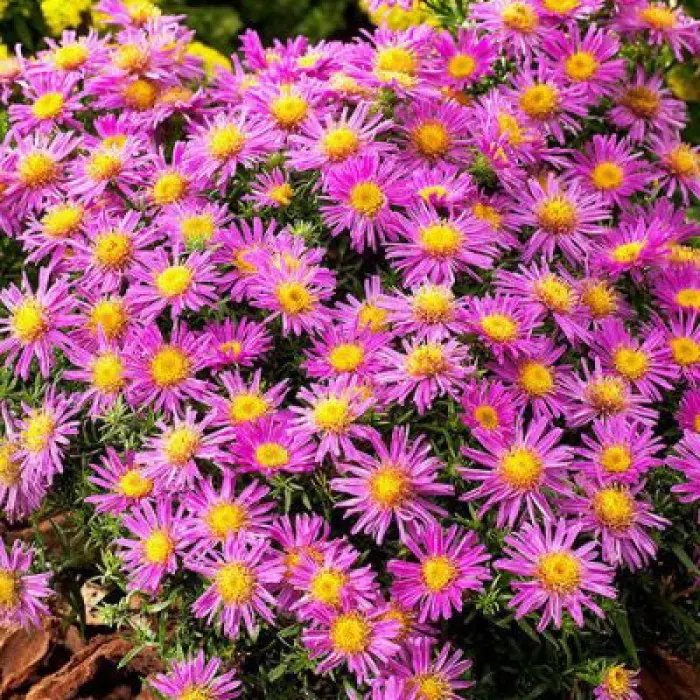 Астра Alice Haslam. Нежно – фиолетовые или розовые соцветия астры с желтой сердцевиной источают приятный аромат. Цветы достигают в диаметре 3 см, благодаря их обильному количеству образуют яркие цветущие полушары. Кустообразная астра Alice Haslam достигает в высоту 50 см. Стебли у кустарника прямостоячие и сильно ветвистые. Они украшены ланцетной, темно-зелёной и многочисленной листвой. Цветение с середины июня, и оно может продлиться вплоть до ноября. Особенно обильное цветение отмечается в августе – сентябре на протяжении 35-40 дней.