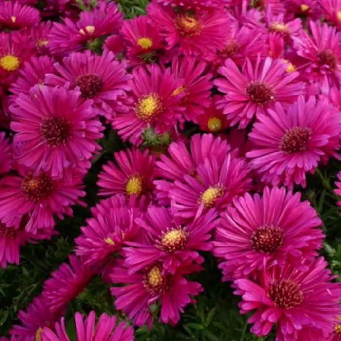 Астра кустарниковая Kassel. Неприхотливое многолетнее растения, цветущее осенью. Именно они придают осеннему саду яркие, светлые краски и продолжают цветение до снега, когда другие растения уже давно потеряли свои наряды. Сорт "Kassel" ("Кассель") - компактный, бордюрный сорт с крупными цветами яркого малинового цвета. Образует плотный шарообразный кустик. Высота взрослого растения 25-30 см. Цветет в сентябре-октябре.