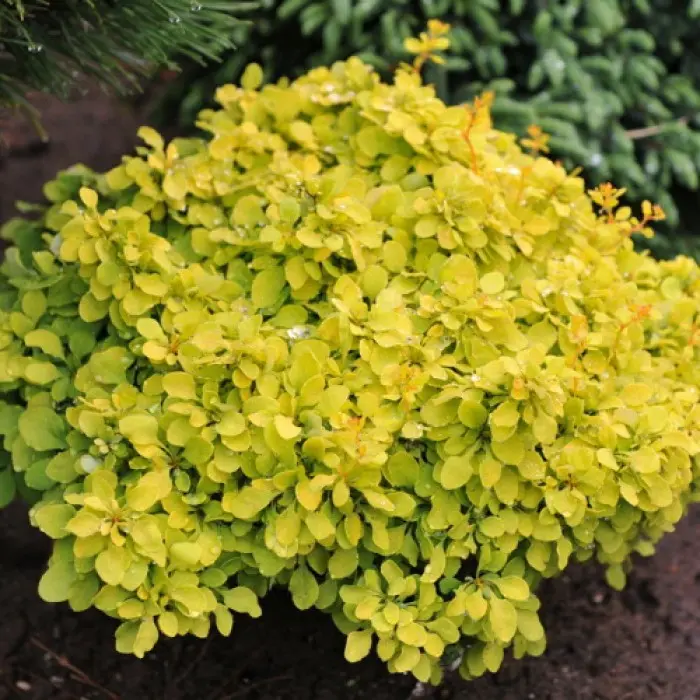 Барбарис тунберга Goldalita. Низкая Голдалита с ровной кроной, состоящей из мелких плотных листочков лимонного оттенка, один из самых красивых сортов Барбариса Тунберга.
