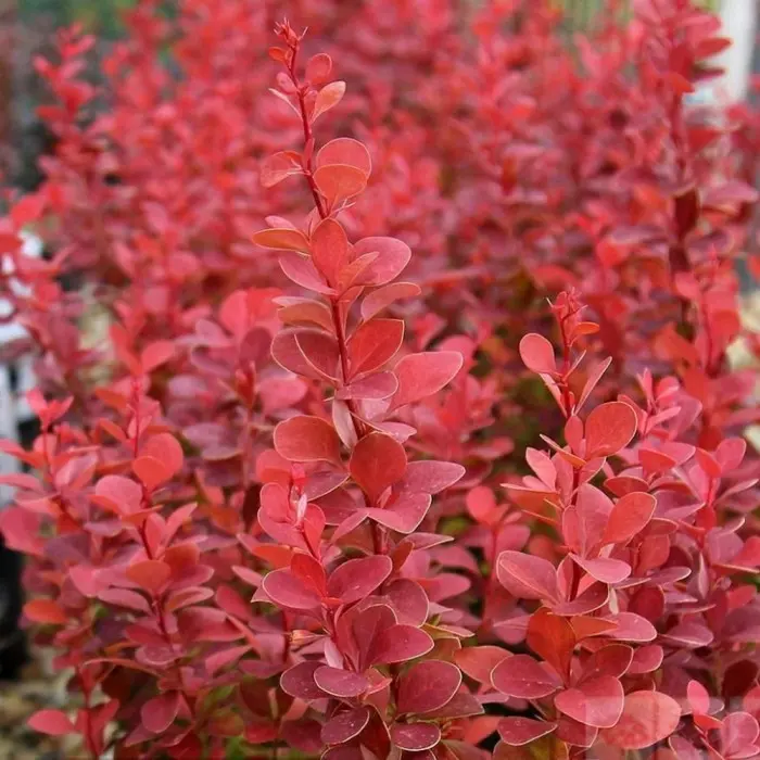 Барбарис тунберга Venice. Куст высотой и шириной 100 см. Листья меняют свой цвет от малиновых до огненно-красно-оранжевых. Цветки жёлтые. Цветение в мае-июне. Плоды красные, продолговатые, долго остаются на кусте. Место посадки предпочитают солнечное. Почва влажная, дренированная.