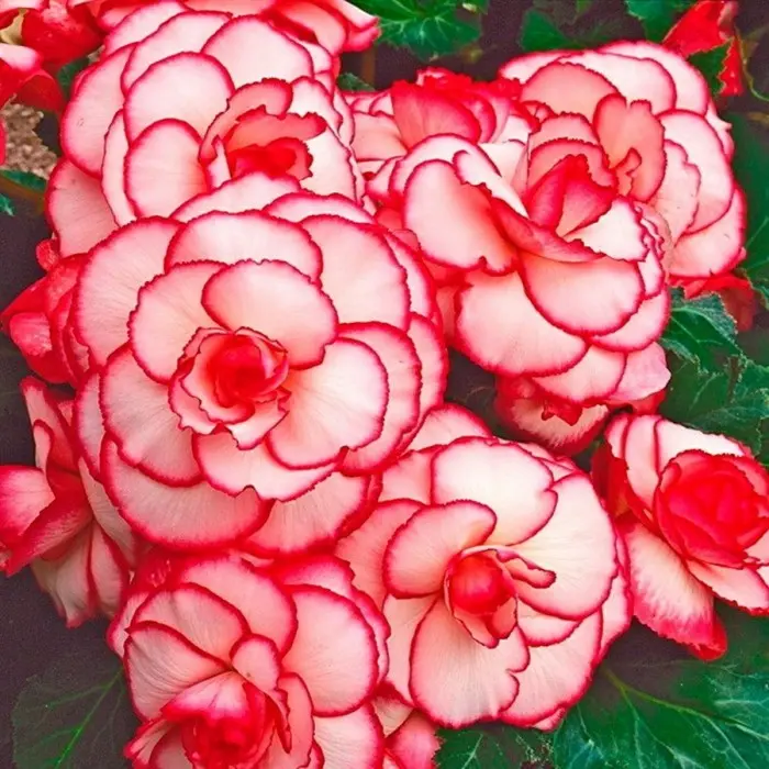 Бегония Пикоти Белая-Красная - потрясающее многолетнее растение, высотой до 40 см, с крупными нежными листьями благородного темно-зеленого цвета. Огромные белоснежно-розовые нарядные цветки, диаметром до 20 см, с ярко-красной каймой по краю каждого лепестка выглядят очень оригинально и обладают невероятно сладким приятным ароматом. Обильное цветение приходится на летний период вплоть до глубокой осени. Великолепно смотрятся в смешанных цветниках, групповых или одиночных посадках, миксбордерах и даже в балконных ящиках.
