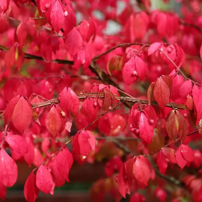 Бересклет крылатый Fireball. Высота до 2 метров, за год растение прибавляет в высоту 10 см. Верхушка у Файербола всегда отличается густотой. Побеги не растут прямо кверху - они склонны стелиться. Окраска листвы меняется с течением времени. В летние месяцы она имеет простую зеленую расцветку. С наступлением осени вероятен пылающий ярко-красный оттенок. Но встречаются и иные варианты, вплоть до простой насыщенно-красной гаммы.