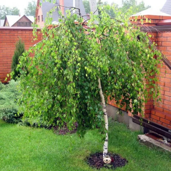 Берёза pendula Youngii. Очень эффектная, плакучая форма кроны. Ветви свисают вертикально вниз. Требуется обрезка ветвей, достигающих земли. (Обрезка только в состоянии покоя) Растет довольно быстро, по 50-100 см. в год. Для штамбовых растений, высота зависит от высоты прививки. Очень эффектно смотрится в одиночных посадках, около беседок, прудов или на фоне газонов.