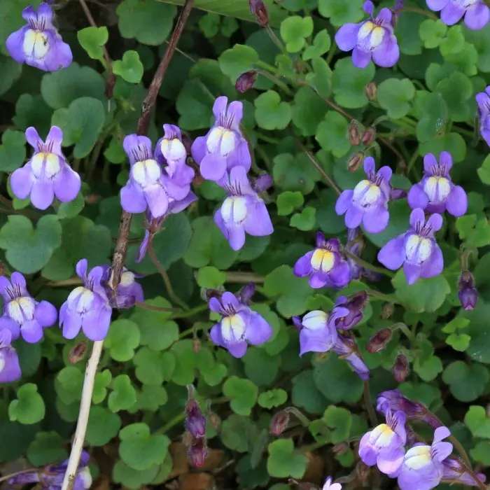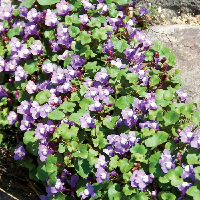 Cymbalaria. Малоизвестное, но прекрасное растение цимбалярия отлично подходит для каменистых садов, рокариев и небольших стен. Она представляет собой стелющееся многолетнее растение, которое очень красиво оживляет низкие стены благодаря своим гирляндам тонких листьев, украшенных многочисленными нежными цветами. Окраска цветков варьируется от голубовато-лиловой, до розовато-лиловой. Срок цветения цимбалярии – с апреля по сентябрь-октябрь.