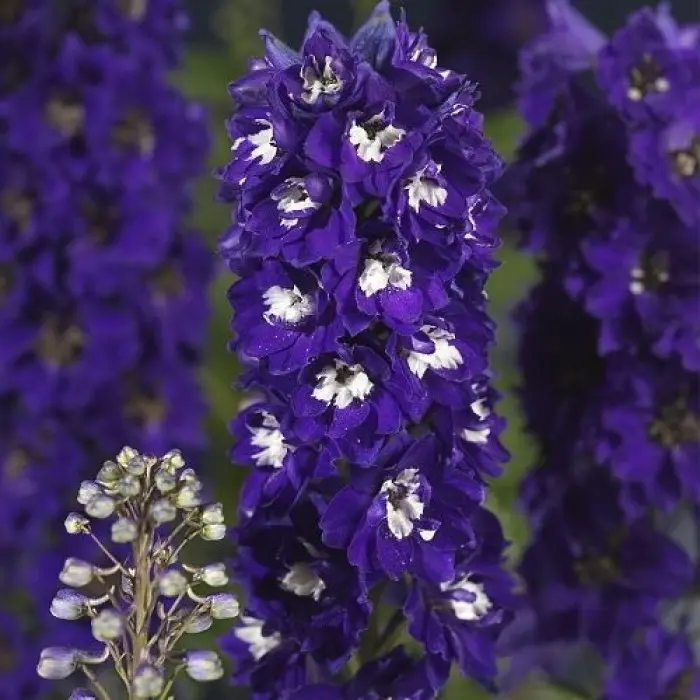 Дельфиниум гибридный Мэджик Фонтейн Дарк Блу Вайт Би