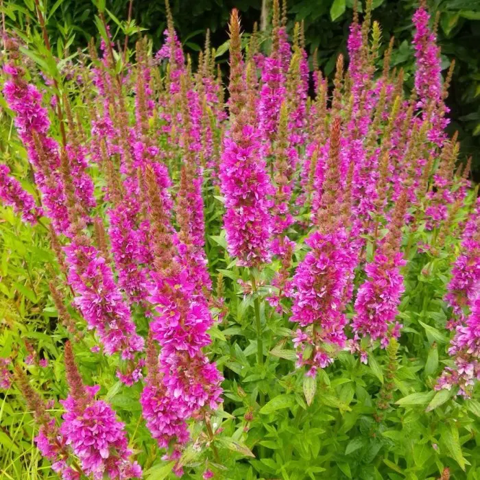 Дербенник иволистный Robert. Травянистый многолетник (плакун-трава) образующий крупный неплотный куст высотой до 70 см. Цветки темно-розовые собраны в колосовидное соцветие. Цветение июль- август. Название обусловлено очень интересной особенностью этого растения: после дождя, когда выглядывает солнце, на кончиках листьев появляются капельки воды.Таким образом, дербенник избавляется от излишков влаги. Но ведёт он себя так только на сырых, переувлажнённых местах.