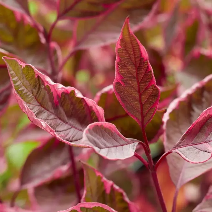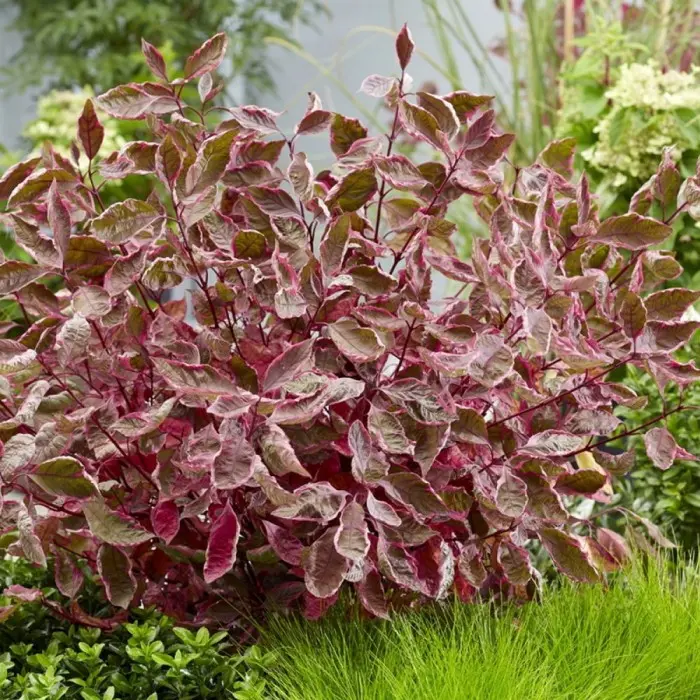 Дерен белый Miracle. Принадлежит к виду деренов белых и является высокодекоративным растением, которое используется для одиночных и массовых посадок на садовых участках.Кустарник-хамелеон, меняющий цвет в зависимости от сезона. Весной листья окрашены в зеленый цвет с бело-розовой каймой, летом зеленый сменяется пурпурно-красным цветом. Сами побеги также яркие красные. В высоту сорт Miracle достигает 1–2 м (в зависимости от обрезки).