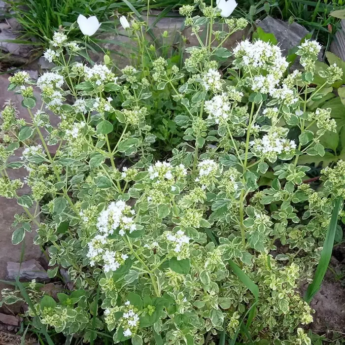 Душица обыкновенная Panta. Многолетнее травянистое растение. Высота от 15-30 см. Имеет листья бело-зеленые, мелкие, округлые, ароматные. Цветки мелкие, многочисленные, белые в щитковидной метелке. Период цветения июль-сентябрь. Это выносливое растение нуждается в солнечном или частично затененном месте в саду или на балконе.