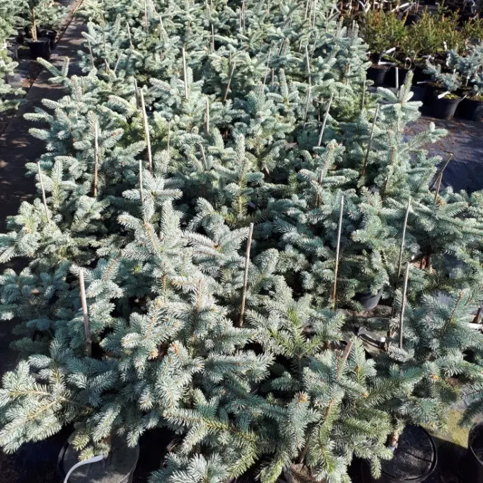 Саженцы ели привнесут в процесс озеленения необычные цветовые акценты хвои. Многолетняя хвоя серебристо-голубого цвета, на фоне которой весной появляются побеги золотисто-жёлтых оттенков.
