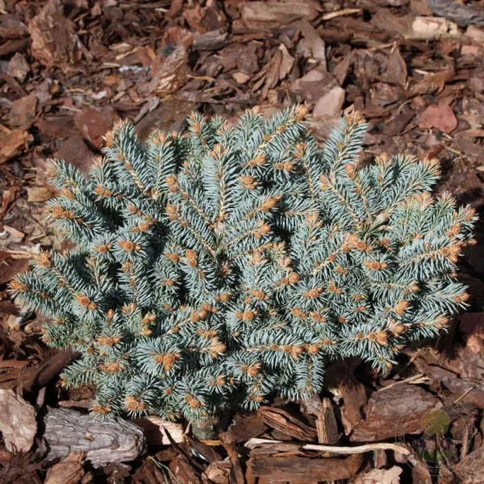 Ель колючая Oliwia. Карликовая голубая ель. Форма приплюснуто-шаровидная, компактная. К 10-ти годам 50-60 см в диаметре. Хвоя серебристо-голубая. Прекрасно подходит для малых садов, альпинариев, вересковых садиков и выращивания в контейнерах. Великолепно выглядит, привитая на штамб. Место солнечное. Почва умеренно влажная, дренированная. Зона зимостойкости 4 (до -29?С).