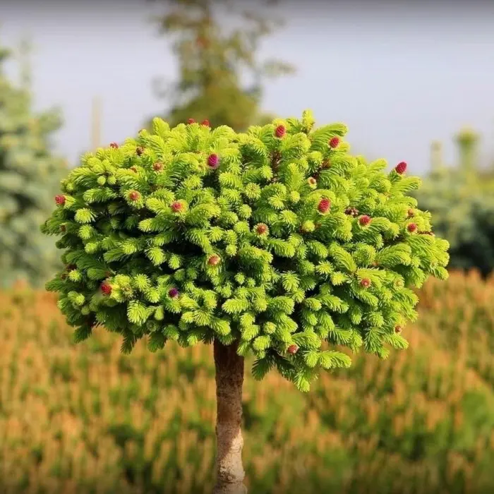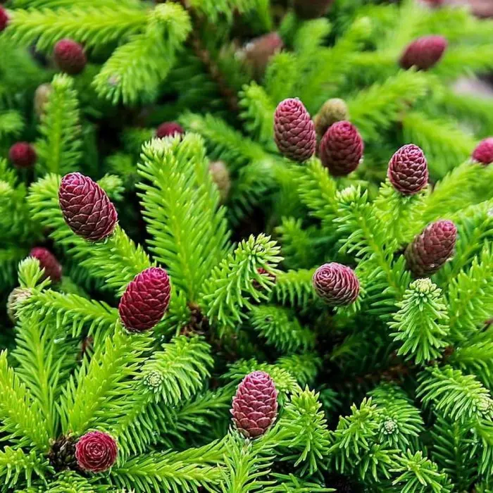 Ель обыкновенная Wild Strawberry. Карликовая плоско-сферическая форма. Крона плотная, правильная. Растёт медленно, к 10-ти годам высота 40 см и ширина 50 см. Отличительной чертой сорта являются многочисленные красные шишки, которые появляются весной на концах побегов. Рекомендуется для небольших садов, альпинариев, для посадки в открытых местах и для выращивания в контейнерах. Место солнечное. Почва умеренно плодородная, умеренно влажная. Зона 4 (до -29?С).
