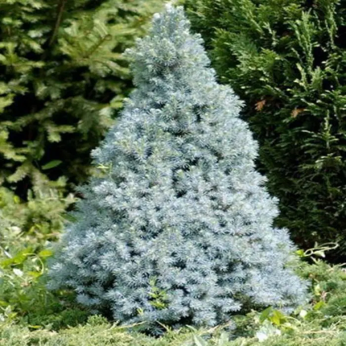 Красивая конусовидная форма кроны, вместе с нежной голубой раскраской кроны идеально подчеркивает практически любую композицию. Такой, достаточно оригинальный внешний вид позволяет сделать эти растения для сада достаточно универсальными.