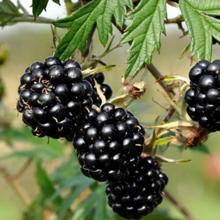 Ежевика Thornless Evergreen. Бесшипная мутация сорта «Evergreen». Куст мощный, стелющейся формы, даёт много побегов замещения. Побеги длиной 3,5-4 м. Цветки белые или бело-розовые. Листья вечнозелёные, очень сильно рассечённые, очень декоративные. Ягоды массой 3-3,5 г, чёрные, транспортабельные, созревают неодновременно с середины августа до середины сентября, могут храниться в прохладных условиях несколько дней. Семена крупные. Вкус при полном созревании сладкий с приятным тонким ароматом. Плодовая кисть разветвлённая, повислая, содержит 25-70 ягод. Урожайность высокая.