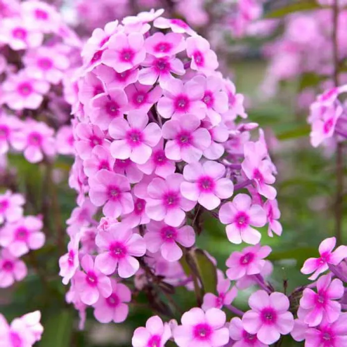 Флокс метельчатый Miss Pepper. Популярный морозостойкий многолетник. Куст компактный, хорошо облиствленный. Стебли прочные прямостоячие. На их концах образуются соцветия. Сорт удивительно живучий и здоровый, отлично нарастающий.