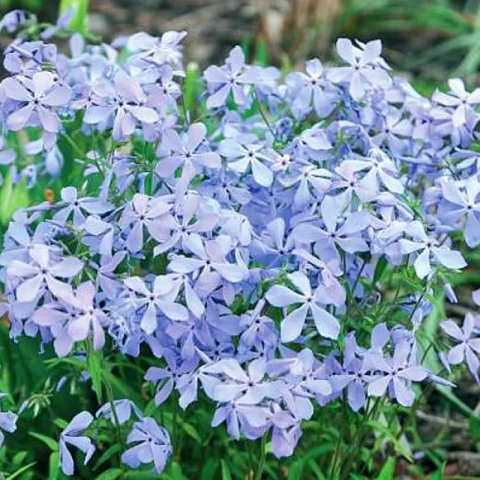 Цветки Флокса Клаудс оф Парфюм имеют нежный голубой окрас. Небольшие, всего 2 см в диаметре, цветки собраны в соцветия. Высотой куст совсем небольшой 30 см. Стебли тонкие, ползучие, хорошо облиственны. Привлекает этот сорт своей ароматностью! А цветение продолжается в течение месяца с конца мая по июнь.