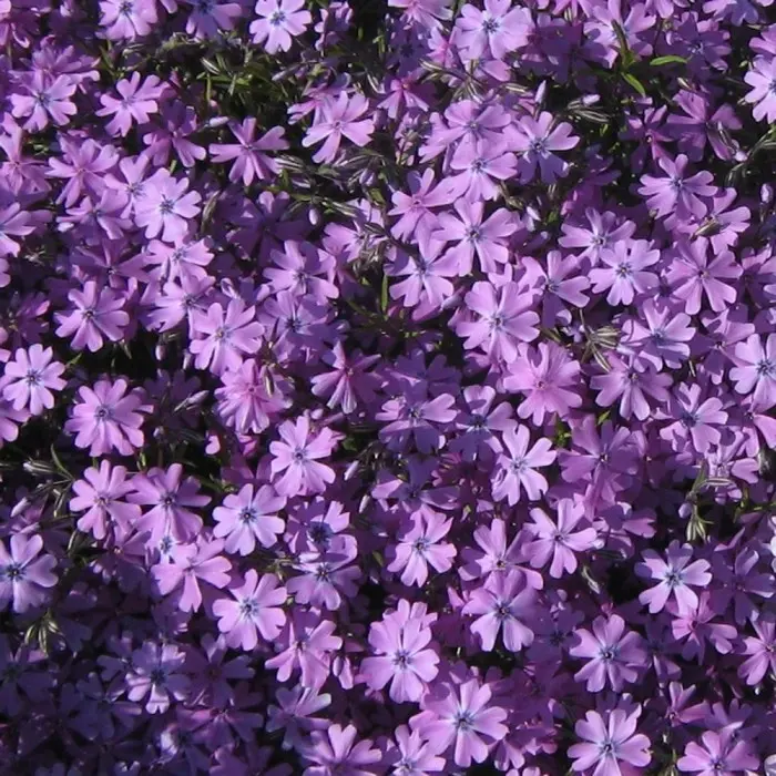 Флокс шиловидный Purple Beauty. Лилово-фиолетовый с сине-фиолетовыми лучиками от центра. Цветок с сильно разделенными лепестками. Хорошо разрастается, образуя подушки высотой до 12-15 см. Диаметр венчика 2,2-2,5 см. Цветение: май-июнь. Отлично чувствует себя на солнечных местах.