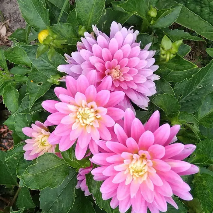 Георгина Gallery Rembrandt - Высота 40 см. Размер цветка 12 см. Соцветия махровое, шаровидное, с продолговатыми лепестками с закругленными кончиками. Окраска раскрывающегося бутона желтая, по мере раскрытия на соцветии появляются лепестки розово-малиновой окраски. Полностью открытое соцветие имеет основной цвет темно-розовый, серединка бутона остается желтой.