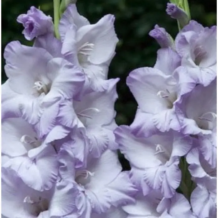Разбор 12/14. Цветки этого сорта выглядят очень благородно. Их голубые гофрированные лепестки по краям окрашены в светло-фиолетовый цвет. На длинном цветоносе (60-80 см) насчитывается по 10-15 цветочков диаметром до 20 см. Листья заострены, поэтому гладиолус часто называют шпажником. Растение высотой 120-150 см будет видно с любого уголка сада, а также прекрасно подойдет для создания праздничного букета.