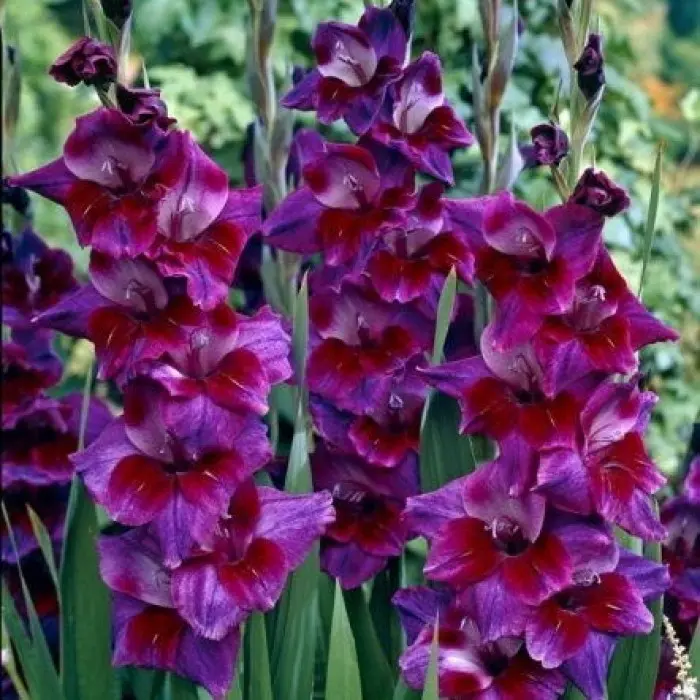 Разбор 12/14. Цветы сине-фиолетовые, с сиреневым отливом, бархатистые. В высоту стебель вырастает до 110 см, длина соцветия – 50 см, а диаметр бутонов 12-15 см. Гладиолус Вельвет Айз достаточно прочен, но рекомендуем подвязывать стебель к опоре, чтобы не допустить его поломку в ветреную погоду. При редкой штучной посадке гладиолус растворяется в саду, пропадает его роскошь, поэтому рекомендуется высаживать его группами по 10-15 шт.