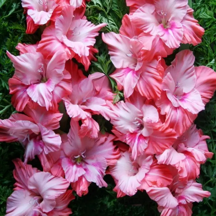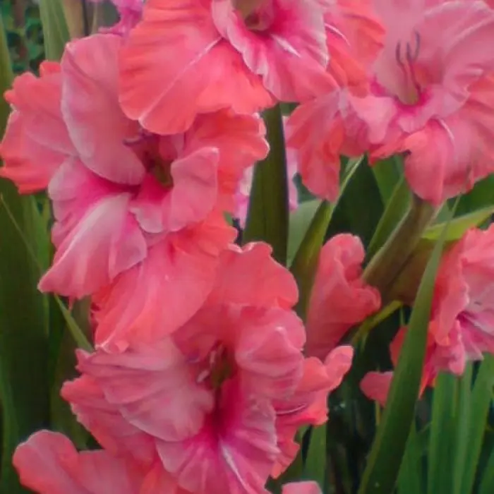 Гладиолус российский Волнующая Радость. 1 разбор луковиц! Высота растения: 170см. Диаметр цветка 14см и выше. Семгово-розовый, чистых тонов. В горле малиновое бархатистое пятно. Цветки крупные, складчато- гофрированные.Тёмно –лососево -розовый с вишнёвым крупным пятном на нижних лепестках, гофрированный, цвет очень сочный и нарядный.