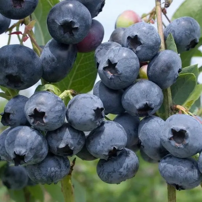 Голубика садовая Blue Suede. Ранний самоплодный сорт с длительным плодоношением. Ягоды крупные, красивого светло-голубого цвета, очень прочные и устойчивые, с приятным вкусом и ароматом. Урожайность стабильная. Высота взрослого растения 150 см