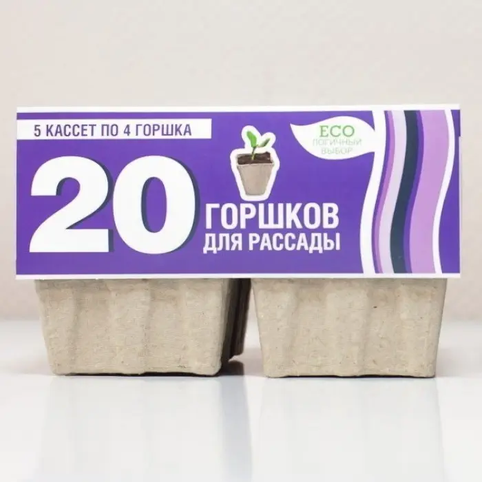 Горшки бумажные для рассады 4 ячейки 90*65*60 мм, 5 шт