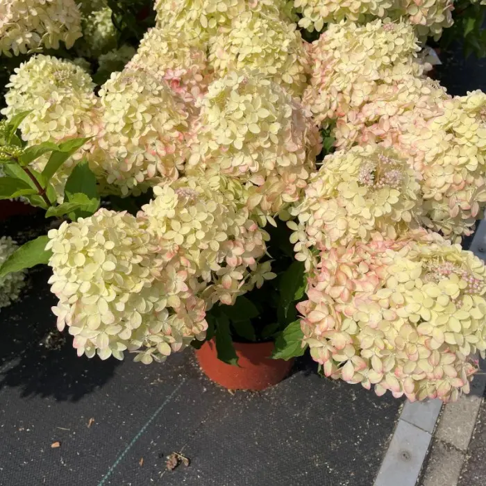Гортензия метельчатая XS-Light. НОВИНКА! Высота куста до 70 см., размер соцветий может достигать 30 см! Цветы в начале цветения зеленовато-кремовые, затем постепенно розовеют. Цветение гортензии продолжается с июля до поздней осени. Гортензия морозостойка (до -34) и неприхотлива, для посадки рекомендуется выбрать хорошо освещенное место, питательный, рыхлый, увлажненный, хорошо дренированный, кислый грунт.