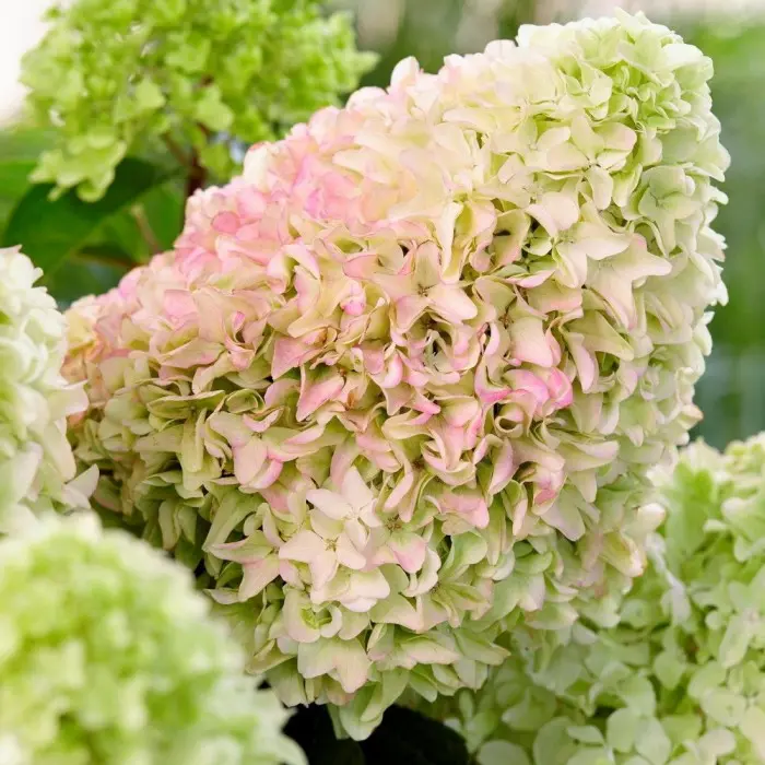 Гортензия метельчатая Little Fresco. Замечательный компактный сорт высотой около 70 см, в ширину разрастается до 50 см, имеет жесткие вертикальные побеги, которые хорошо держатся после сильного дождя и ветра. Огромные метелки состоят из стерильных кремово-белых и светло-зеленых цветков, которые постепенно приобретают нежно-розовые оттенки. Цветет с июля по сентябрь. Селекционер Guido Rouwette. Сорт получил серебряную медаль на международной выставке Plantarium 2019 (Голландия). Предпочитает открытые солнечные участки или легкую полутень. Растение неприхотливое, устойчивое к болезням и вредителям. Почвы увлажненные, кислые, богатые гумусом, дренированные. Морозостойкость до –30?C.