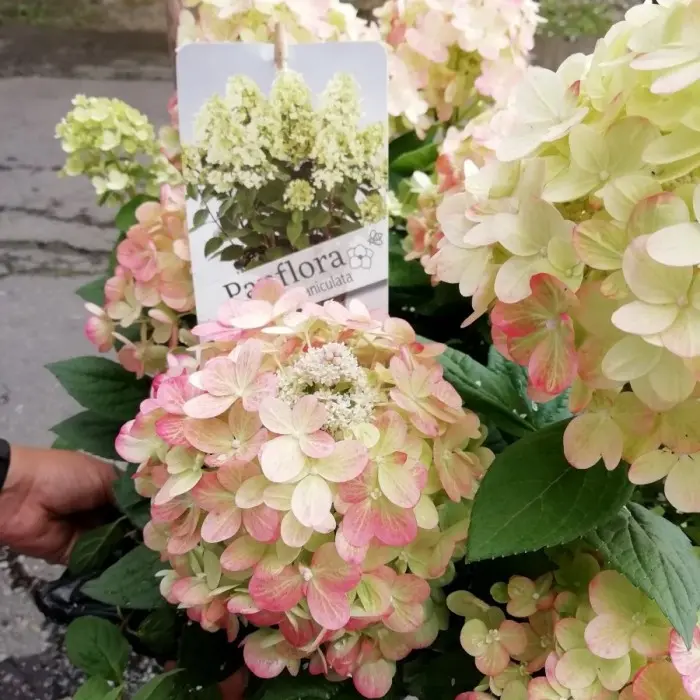 Гортензия метельчатая Panflora. НОВИНКА! Компактный сорт с большими метелками до 20 см, но не плотными, а слегка рыхлыми, с кружевными соцветиями, фертильными и стерильными цветками. При распускании соцветие белое, затем проявляется нефритовый, лаймово зеленый цвет, затем на цветках появляется розово-малиновая кайма. Имеет насыщенный аромат ванили. Зацветает в июне и цветет до осени. Куст высотой до 100 см, шириной до 80 см. Также подходит для выращивания в контейнерах. Морозостойкость - 4 зона.