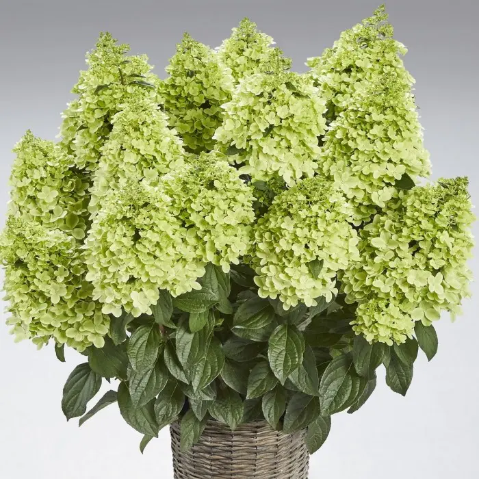 Гортензия метельчатая Pantheon. НОВИНКА! Соцветия меняют цвет с лимонно-белого в начале цветения, затем становятся розовыми, а к осени на пурпурные. Плотные широкие конические соцветия , до 40 см длиной. Стерильные цветки диаметром 2-3 см, из 4-х лепестков. Цветение раннее, начинается в июне и продолжается до октября. Куст требует минимального ухода. Высота взрослого растения 80-100 см. Подходит для выращивания в контейнере.