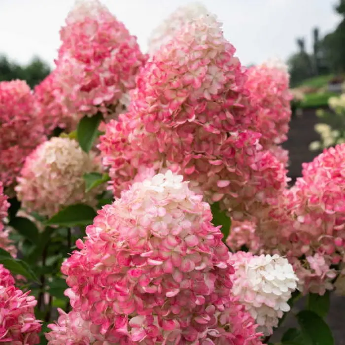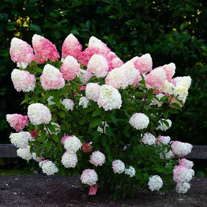 Гортензия метельчатая Pink & Rose. Это сорт, который обладает красивой и симметричной формой кроны. Образует кустик высотой 1,2 - 1,3 м, с сильными, прочными побегами, благодаря чему не разваливается. Не требует подвязки. Соцветия пышные, крупные. Распускается белым цветом, затем соцветия становятся нежно-розовые и на последнем аккорде цветения ярко-розового цвета. Цветет с июля по сентябрь. Светолюбива, но хорошо растет и в полутени. Зимостойкость высокая, но молодые растения лучше на зиму укрывать. Зона 4 (до -29?С).