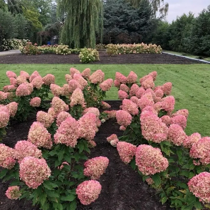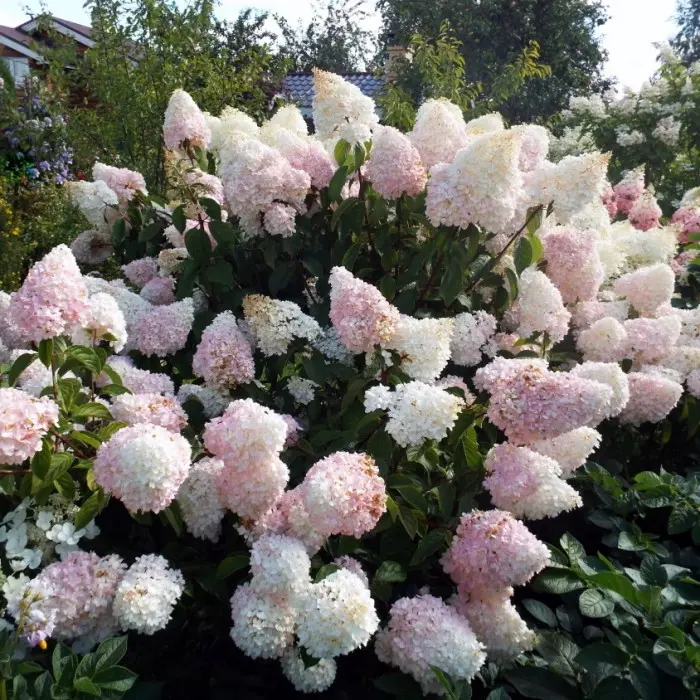 Гортензия метельчатая Summer Love. Образует компактный кустик, высотой 1 - 1,2 м и шириной не более 1 м. Обладает очень плотными и пышными соцветиями. В начале роспуска соцветия белые, затем розовеют и в конце становятся темно-розовыми. Размер соцветия: 20-25 см. Цветение пышное и продолжительное с начала июля и до конца августа. Вынослива и неприхотлива. Зона зимостойкости: 4 (-35 ° С). Предпочитает солнечные места для посадки, но может мириться и с полутенью.