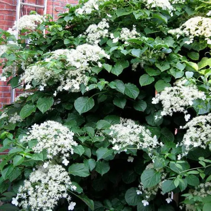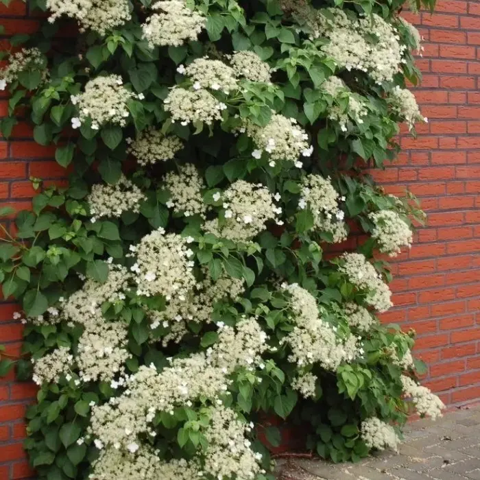 Гортензия черешковая (petiolaris). Бело-розовые цветки собраны в щитковидные, рыхлые соцветия до 20 см в диаметре. Лиановидный кустарник, имеющий массу воздушных корней и присосок, с помощью которых прикрепляясь к коре деревьев взбирается на высоту до 25 м. При отсутствии опоры стелется по земле. Листья широкояйцевидные, длин-ночерешковые, с сердцевидным или заостренным основанием, гладкие, темно-зеленые, блестящие, до 8 см длиной. Плодущие цветки со сросшимися у вершины лепестками, бесплодные — многочисленные, до 3 см диаметром. Цветки медоносны. Молодые саженцы первые годы растут очень медленно, трудно поверить, каким гигантом гортензия может стать со временем. Цветёт в июне-июле. Довольно зимостойкое растение, выдерживает без существенных повреждений климат средних и даже северных районов. У молодых растений в суровые зимы кончики побегов могут подмерзать, поэтому они нуждаются в лёгком укрытии на зимний период. Зона зимостойкости: 4 (-35 ° С).