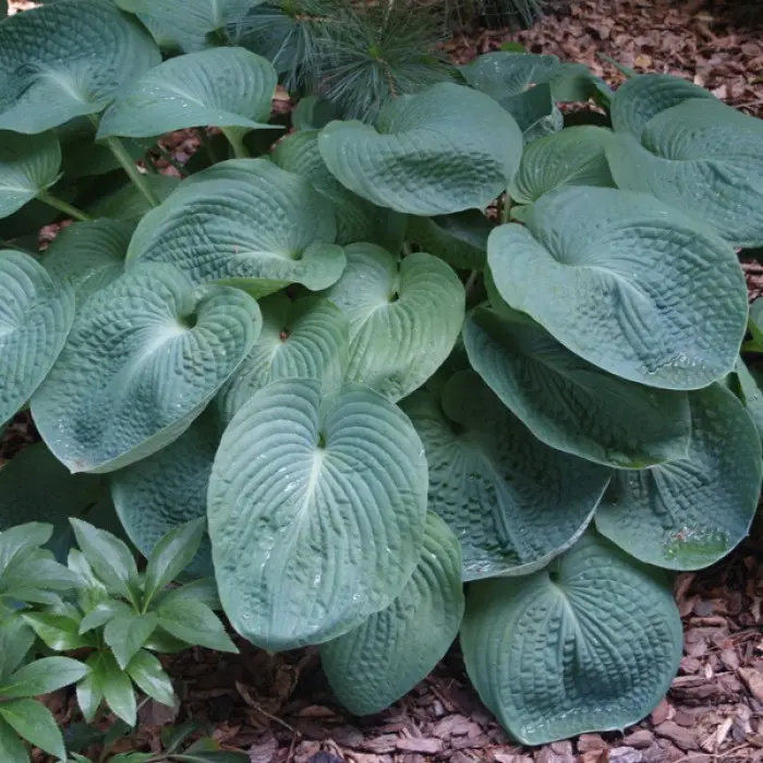 Хоста Elegans. Классический и один из самых известных сортов хост. Листья большие (25 х 23 см), округлые, чашевидные, морщинистые, с хорошо выраженными жилками. Окраска листьев голубая, серо-голубая, на свету становится голубовато-зелёной. Цветки белые, часто с лиловым оттенком, воронковидные. Цветение наступает в июле.
