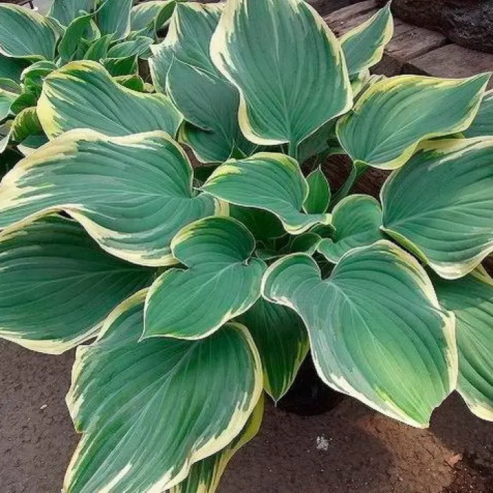 Хоста Sagae. Серо-зеленые, красивые листья, волнистые узкие желтые края. У взрослых экземпляров края шире, чем у молодых. Хоста Sagae - крупная хоста, имеет лавандовые цветы и хорошо растет в полутени и тени. Высота составляет от 80 до 90 см, нарастание очень неплохое.