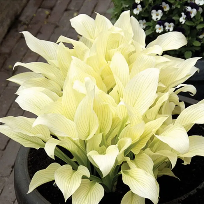 Хоста White Feather (Белые перья) один из самых эффектных гибридных сортов. Всю красоту и благородство листьев по достоинству можно оценить только в тенистых уголках сада, где эта хоста не соперничает с яркими цветами. Молодые листья сливочно- белые, размер 15 см. По мере роста на листьях хосты появляются яркие зеленые полосы, которые со временем заполняют почти весь лист. Куст вырастает до 40-55 см в высоту. Цветки лавандовые, почти белые, цветение с июля по сентябрь. Хоста неприхотлива, холодостойка, теневынослива, исключительно декоративна, растения практически не подвержены заболеваниям, нетребовательны к почвам. Хоста White Feather (Уайт Фезэ, Белые перья) предпочитает плодородные почвы, обеспеченные влагой, но без застоя воды.