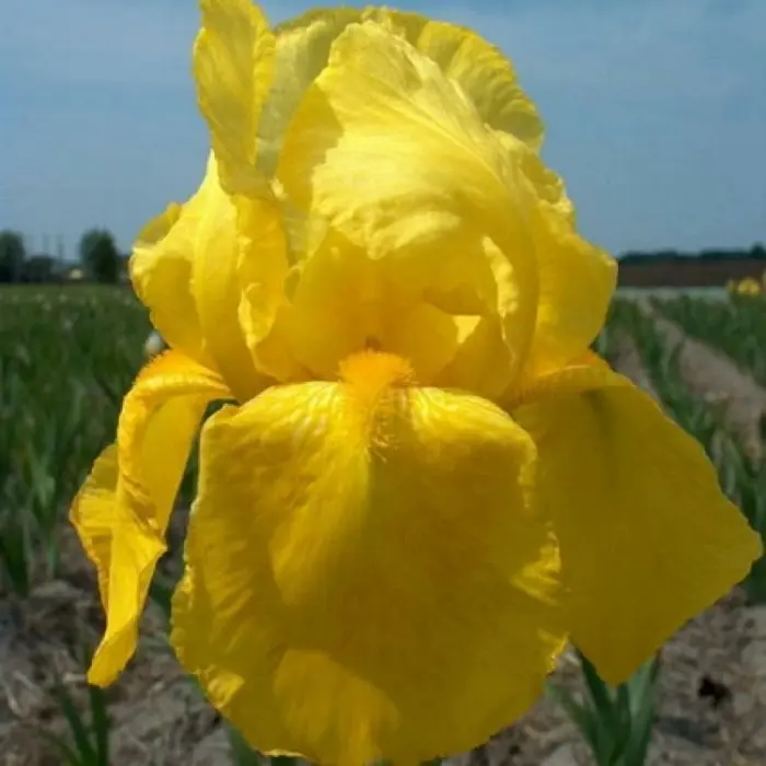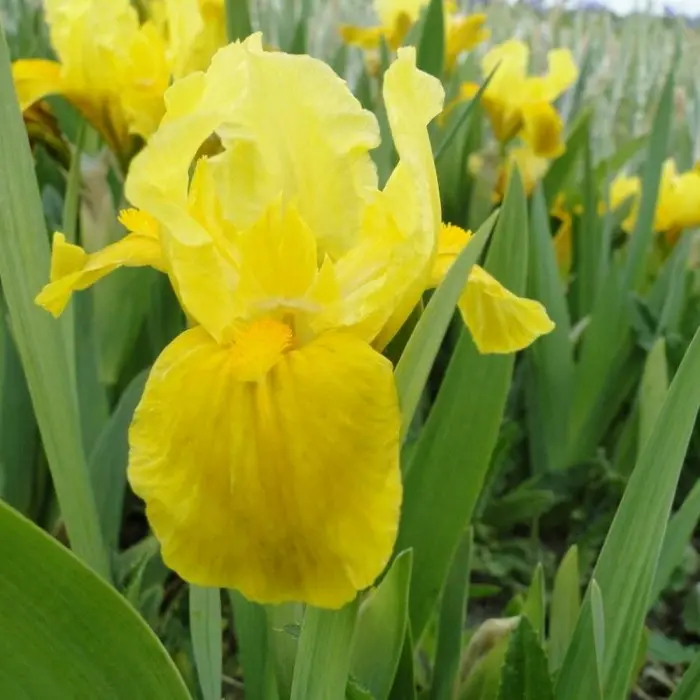 Ирис Berkeley Gold. Высота 70-90 см. Листья прикорневые, линейные, собраны в основании в вееровидные пучки. Цветки ярко-желтые. Растение образует от 1 до 7 цветков размером 10-15 см в диаметре. Цветёт в июне-июле. Цветение длится от 4 до 6 недель, продолжительность жизни цветка составляет до 5 дней. Лучше растет на солнце, в полутени резко снижается количество соцветий. Практически не поражается болезнями. Зимостойкий.