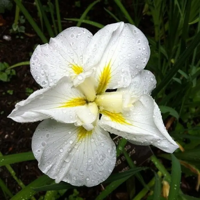 Цветки диаметром 20 см, шестилепестковые, белые с жёлтыми сигналами. Лепестки большие. Лучший среди белых японских ирисов для массовой посадки. Высота 75 см. Цветение в июне-июле. Место солнечное. Почва постоянно влажная летом и сухая зимой. Сажать на 5-7 см ниже уровня почвы, на зиму укрывать сухими листьями и плёнкой или выращивать в ёмкостях и на зиму переносить в подвал.