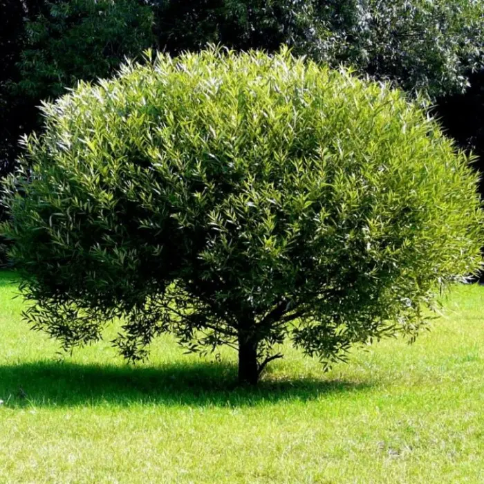 Ива ломкая Globosa. Очень красивый сорт, с шаровидной, само-формирующейся, плотной кроной. Эффектно смотрится в одиночной и групповой посадке на газоне. Подходит для озеленения парков. Листопадное, нередко многоствольное дерево средних размеров. Высота взрослого растения около 5-7 метров. Крона шаровидная, невероятно густая, равномерная. Кора оливково-серая, молодые побеги зеленовато-желтые, прямостоячие, хрупкие. Листья крупные, узко-ланцетные, сизо-зеленые, серебристо-опушенные, осенью желтые. Цветы мелкие, собраны в пушистые серебристо-желтоватые, округло-удлиненные сережки. Место для посадки Ивы ломкой шаровидной Глобозы выбирают солнечное или в небольшой тени. Засухоустойчива, но лучше развивается при регулярном поливе, без переувлажнения. Предпочитает достаточно увлажненные, легкие, воздухопроницаемые, хорошо дренированные питательные суглинки. Не выносит засоления и уплотнения почвы. При хорошем уходе практически не болеет и мало подвержена нападению вредителей, в основном это гусеницы, тля и паутинный клещ в качестве методов борьбы применяются инсектициды (Семпай, Фуфанон, Актара). К грибковым заболеваниям устойчивость высокая, при соблюдении условий агротехники достаточно трех-четырех профилактических обработок за сезон (ХОМ, Абига-Пик, Топаз). Нуждается в санитарной обрезке весной.