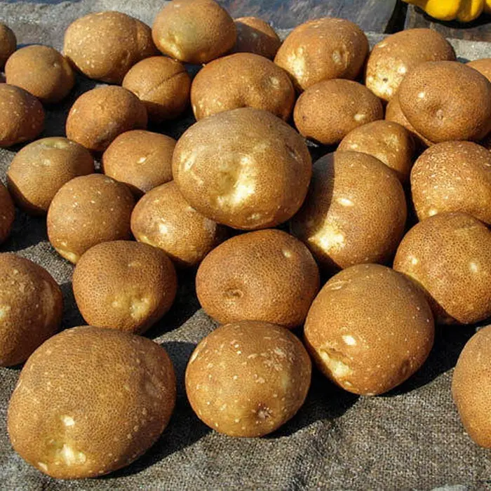 Это универсальный сорт картофеля любительской селекции, выведенный в Калуге. Название получил за круглоовальную форму клубней и шероховатую кожуру, по внешнему виду схожую с кожицей настоящего киви. Сорт получил широкое распространение, семенные клубни пользуются огромным спросом, так как купить их в садоводческих магазинах удается чрезвычайно редко. Вес клубней невелик 80-100 граммов. Это одно из преимуществ сорта такую картошку удобно чистить, она легко умещается в руке. Количество клубней в гнезде до 15 штук, урожайность до 220 ц/га, сроки созревания 120-130 дней. Кожура желто-коричневая, мякоть белая. Лежкость корнеплодов хорошая, до весны сохраняется хорошо. Сорт неприхотлив, выращивается в любых регионах и на любых почвах. Устойчив к вредителям его не очень любят колорадские жуки и проволочник.