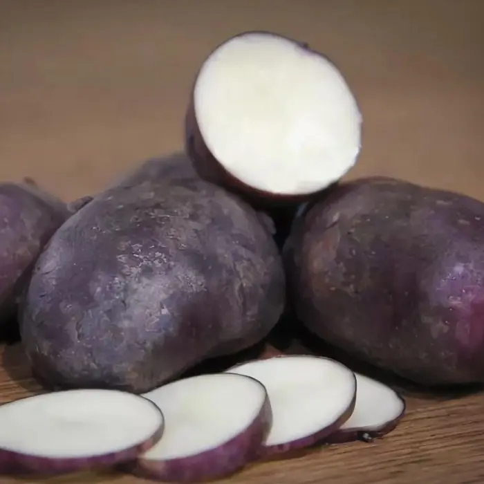 Среднеранний диетический сорт с периодом созревания от 70 до 90 дней. Выведен в России. Клубни продолговатой овальной формы сине-фиолетового цвета. Кожура гладкая, глазки мелкие. Мякоть кремовая, не меняет цвет при нарезке и термической обработке. Картофель обладает хорошими вкусовыми качествами, умеренно разваристый. Этот сорт отличается высоким содержанием витаминов С и Е, а также каротиноидов. Сорт диетический, подходит для детского питания. Урожайный. Содержит полезные вещества – каротиноиды и витамины, устойчив к заболеваниям (нематода, рак). Вес клубня 80-100 гр.
