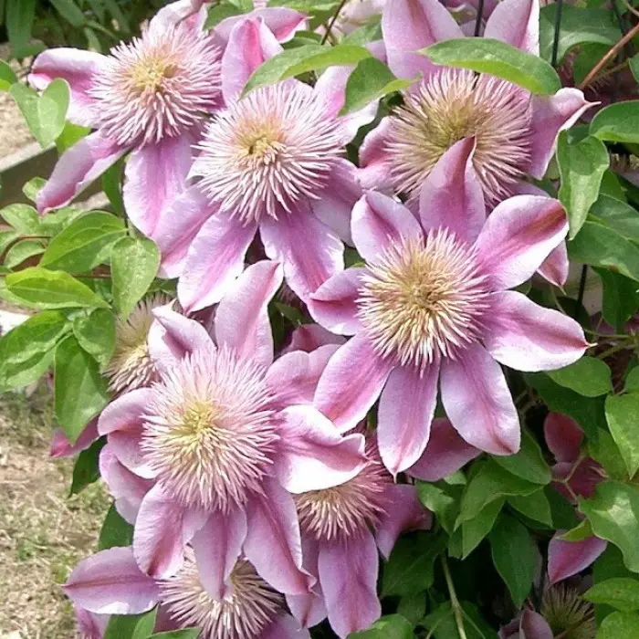 Бледнорозовые махровые цветки, внешние прицветники с широкой темной полосой по середине каждого лепестка, диаметр 15 см. Цветение обильное в июне и с августа по сентябрь. Высота 2 м. 2-яя группа обрезки (до середины). Хорош для посадки у ограждений, беседок, решёток и других садовых опор или в больших контейнерах на балконах и террасах. Не любит солнечных, горячих мест. Как и все клематисы очень любит мульчирование: сосновая или лиственная кора, хвойный опад, щепа и тд. Рекомендуется делать приствольный круг бордюрной лентой для задержания влаги и мульчирующего материала. На зиму желательна окучка.