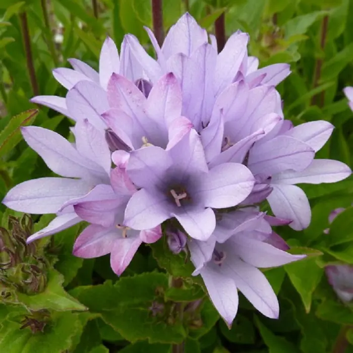 Колокольчик скученный Caroline. В высоту достигает 50 см. Вертикальные соцветия-кластеры из колокольчиков нежной розово-сиреневой расцветки! Более 15 колокольчиков в каждом соцветии! Универсальный многолетник не нуждается в особом уходе и предпочитает места с плодородной почвой и притенением в полуденные часы. Отлично смотрится на садовой клумбе и в центре контейнерной композиции. Нарядный букет из колокольчиков стоит в вазе около 2-х недель! Цветет с июня по июль.