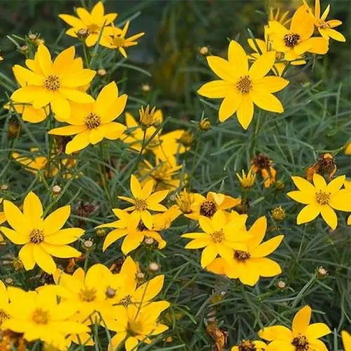 Замечательный невысокий сорт кореопсиса мутовчатого. Высота растения не превышает 25-30 см. Растение образует куст округлой формы с густой ажурной листвой и множеством очень ярких золотисто-желтых цветов. Время цветения: конец июня-август. Место солнечное. Почва лёгкая, бедная. Зона 4 (до -29°С).