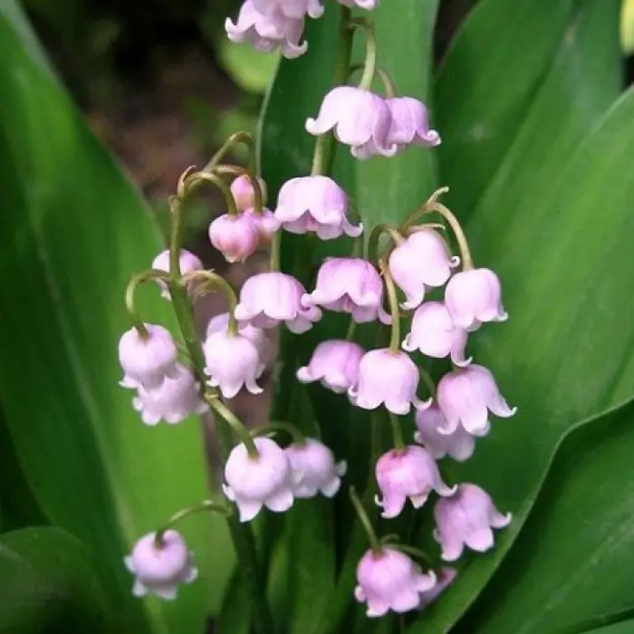 Ландыш майский Rosea — высота до 20 см. Цветки колокольчатые, нежно-розовые. Растение с соцветиями по 10-12 цветков на стебле. Выращивают их в тенистой и полу-тенистой стороне. Цветет в мае и июне.