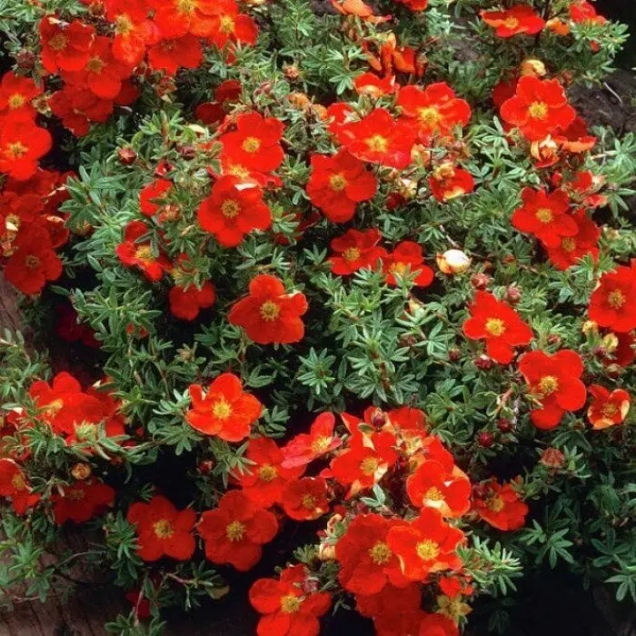 Лапчатка кустарниковая Marian Red Robin/Marrob. Обильно цветущий небольшой, карликовый кустик с аккуратной кроной и яркими красными цветочками, которые радуют своим обильным цветением на протяжении всего лета.