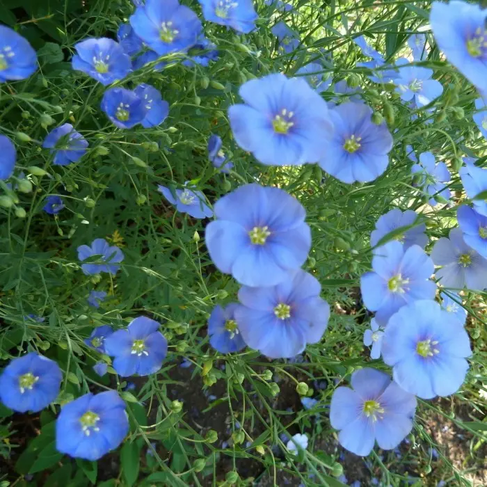 Лен Небесная Лазурь смотрится очень романтично в посадках, особенно если вы высаживаете его несимметрично, чтобы он смотрелся произрастающим естественно. Голубые небольшие цветочки прекрасно сочетаются с фиолетовыми, жёлтыми, синими, белыми и даже ярко-красными цветами. Высота растения 45, цветение июнь-июль.