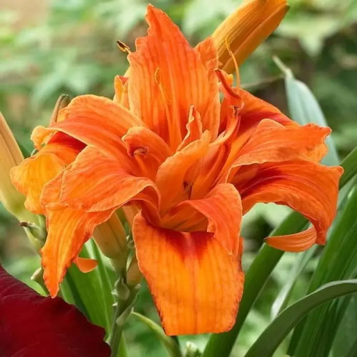 Удивительный махровый лилейник, обладающий лепестками невероятной формы. Цветки сочного оранжевого цвета, в диаметре 10 см. Высота растения 60-80 см. Пик декоративности этого сорта приходится на вторую половину лета, цветение продолжается до сентября.