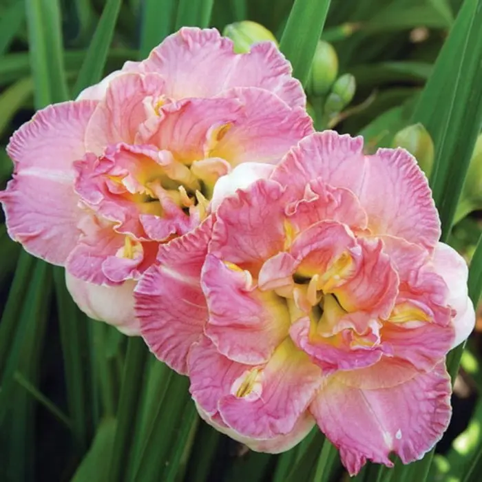 Лилейник Lacy Doily. Самый многоцветный сорт, который только может быть! И при этом яркий, компактный, а также обладает необычной окраской: его лепестки, цвета клубники со сливками, также раскрашены персиковыми, жёлтыми, коралловыми, белыми и лиловыми мазками! Невероятное чудо из чудес, на которое хочется любоваться вечно. Лилейник Лейси Дойли компактен, его высота всего 50 см. Это очень удобно, если вы хотите создать новые контейнерные посадки, куда он отлично впишется. Цветы диаметром 12 см. Лилейник Лейси Дойли цветёт повторно, поэтому вы можете наблюдать за его радужным настроением и в начале лета, и даже в начале осени. Также цветы источают приятный лёгкий аромат, который точно оценят девушки-садоводы. Цветение лилейника интенсивное. Уже через несколько лет вам нужно будет его пересаживать и делить.
